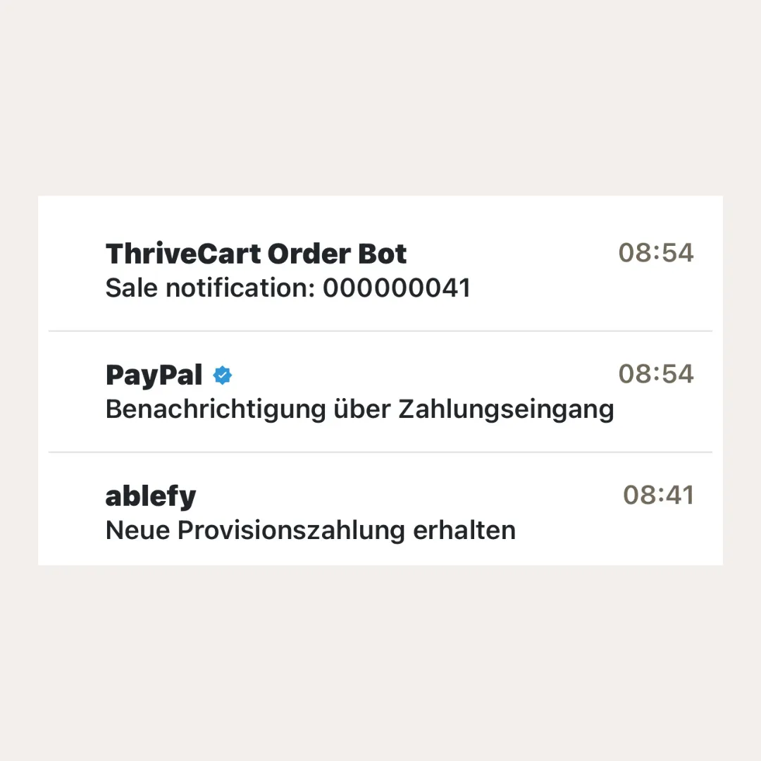 und innerhalb von Sekunden drei Zahlungsbenachrichtigungen aufploppten.